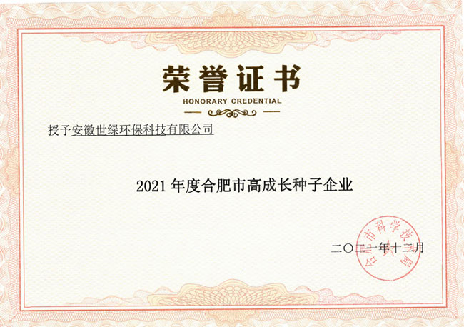 2021年合肥市高成長企業認定結果正式出爐啦!近日,合肥市科技局委托各區管委會,對認定企業發放了認定證書。安徽世綠環保榮獲2021年合肥市高成長種子企業。