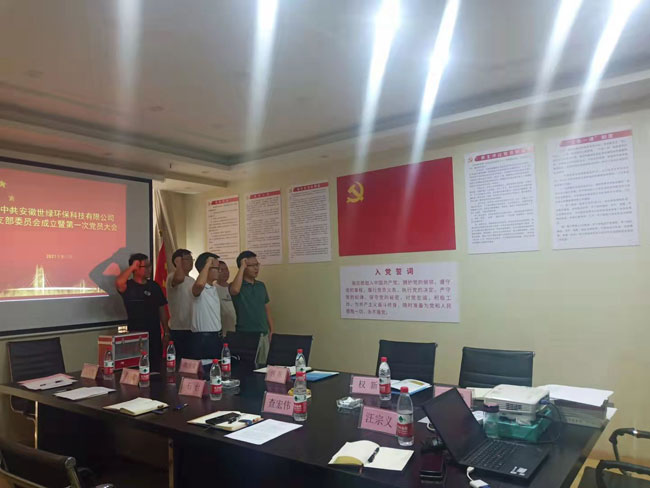 2021年9月30日上午,安徽世綠環保科技有限公司第一次全體黨員大會順利召開,同時中共安徽世綠環保科技有限公司支部委員會正式成立。